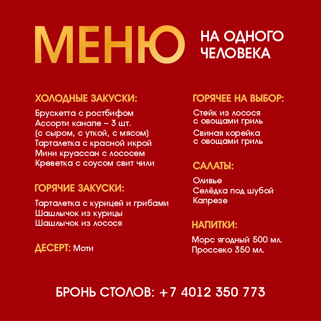 Бронь Столов на Новогоднюю ночь через форму брони или по телефону +7 (4012) 350-773